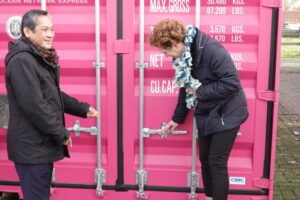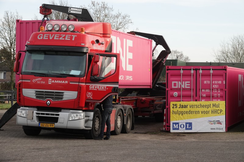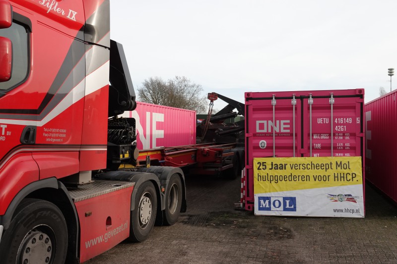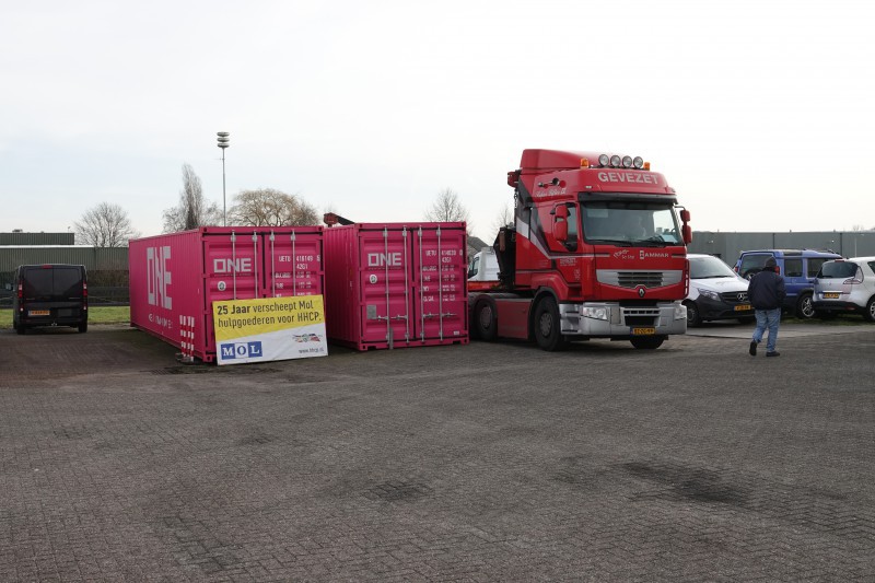 De containers staan klaar om woensdag 22 januari verscheept te worden.