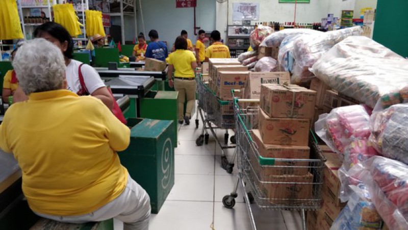 Boodschappen inkopen voor de gezinnen van de sponsorkinderen